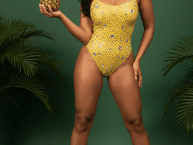 Stellen Sie sich eine Frau vor, die ihre Sinnlichkeit nutzt, einen üppigen braunen Körper mit Kurven und einer seidig glatten Haut, mit leuchtenden Augen und einem schillernden Lächeln.